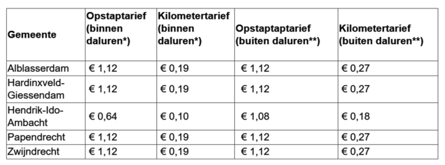Vanaf 1 januari 2026 wijzigt in de gemeenten Alblasserdam, Hardinxveld-Giessendam, Hendrik-Ido-Ambacht, Papendrecht en Zwijndrecht het tarief voor het reizen met de Drechthopper en/of Wijkhopper.